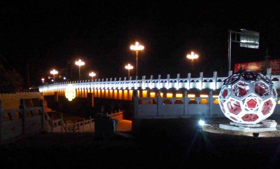 項目位于山西省高平市,跨越丹河。新建橋梁全長80.58m,橋?qū)?4m。橋梁跨徑布置為21+30+21m。橋梁景觀包括橋頭雕塑、人行道及欄桿、橋梁外飾掛板及中國結(jié)、景觀照明及綠化種植等。橋頭廣場及橋下人行走廊工程包括4個橋頭廣場及丹河兩岸的2條橋下人行走廊。